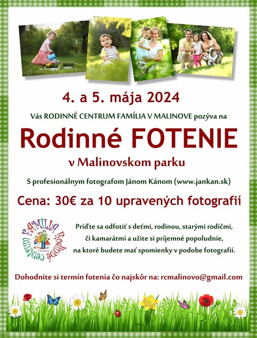 Za prísnych bezpečnostných a hygienických opatrení zrealizujeme naše obľúbené fotenie v parku s najlepším fotografom pod slnkom, Jankom Kánom. Ak máte záujem, píšte a rýchlo sa prihlasujte, termíny sa míňajú, keďže robíme väčšie časové rozostupy a je ich menej ako zvyčajne.